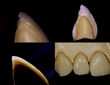 We specialize in creating custom dental bridges that restore missing teeth. Our bridges are designed to blend seamlessly with the patient's natural teeth, providing both functionality and aesthetics.